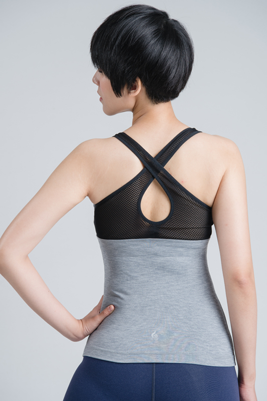 背後優雅網狀姿,布料厚實、貼身,(上衣附贈可拆式胸墊一副) / 模特兒三圍33/25/36,身高164CM 穿S號 / 圖片因打光及個人電腦色彩顯示不同會略有色差。